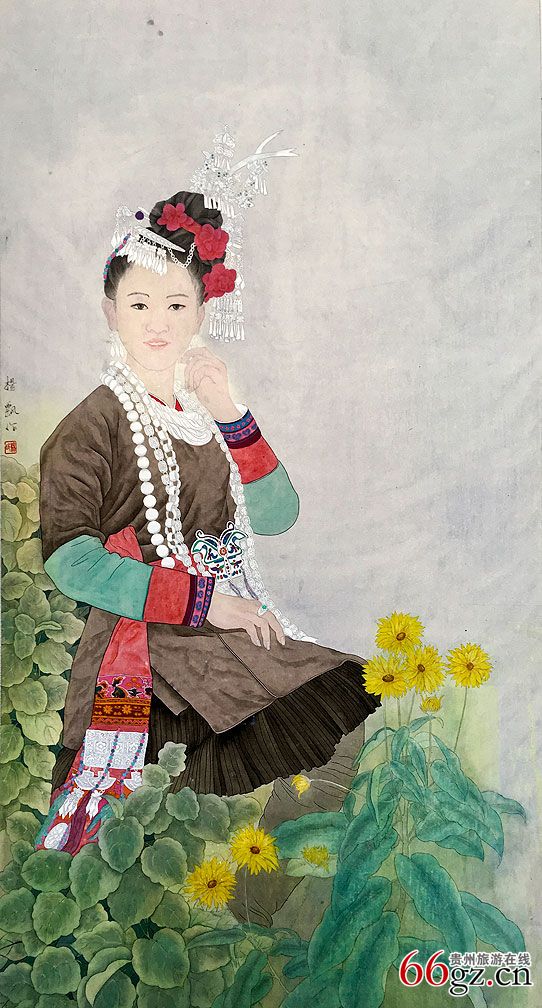 国画《侗家女孩》作者﹕杨飘