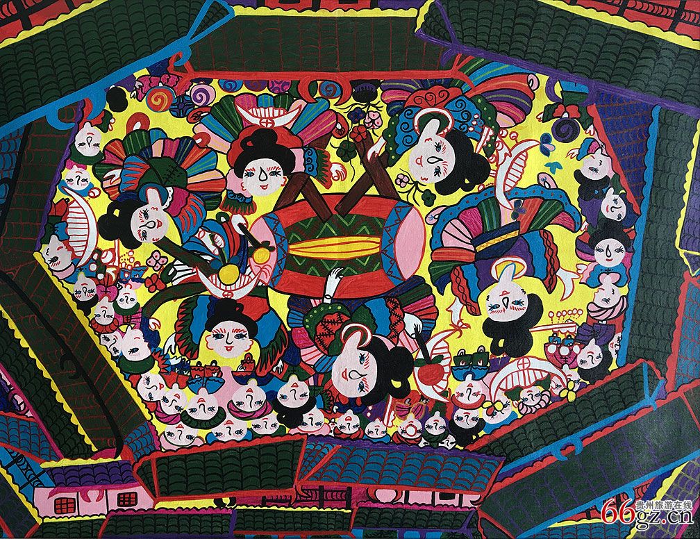 民间绘画《苗家木鼓舞》作者﹕王明桃