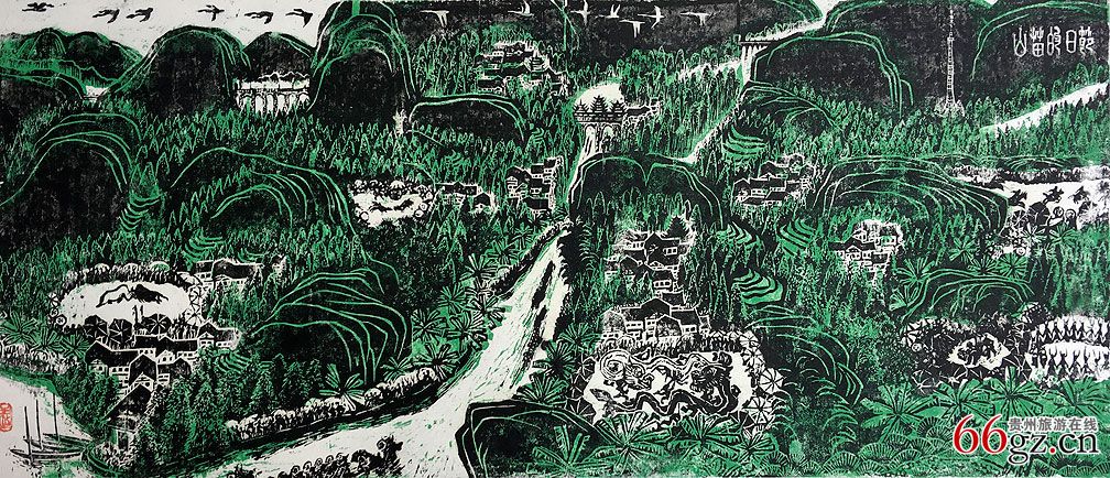 版画《沸腾的苗岭》作者﹕王健
