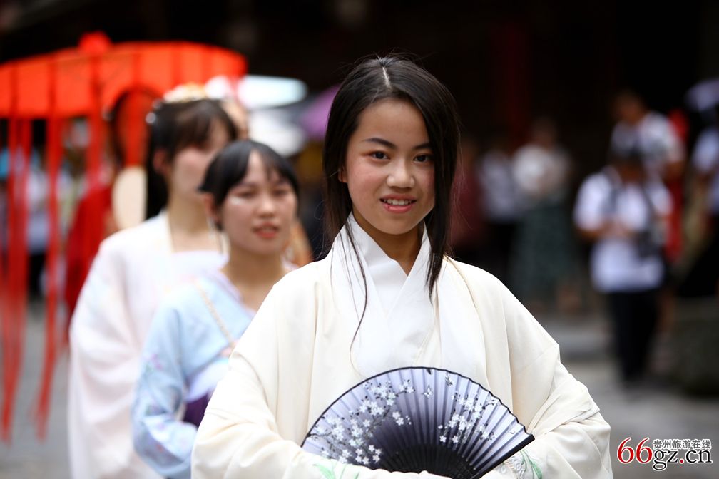 7月27日 ,下司古镇《首届九栖汉文化节》在古镇上演,汉服爱好者们身着传统服饰漫步街巷,为古镇增添一道美丽的风景。活动当天,伴随着古风的伴奏,200余名汉服爱好者们身着华美汉服列队而行。悠长的古镇石板街上,古朴的建筑与大气端庄的汉服相映成趣,古韵的美感在举手投足间散发出来。清风徐徐,衣袂飘飘,汉服之美,尽在其中。诗意的自然风光、丰富的历史积淀与中华传统汉服文化相结合,迸发出了独特的魅力,引得游客们纷纷驻足观赏,拍照留念。