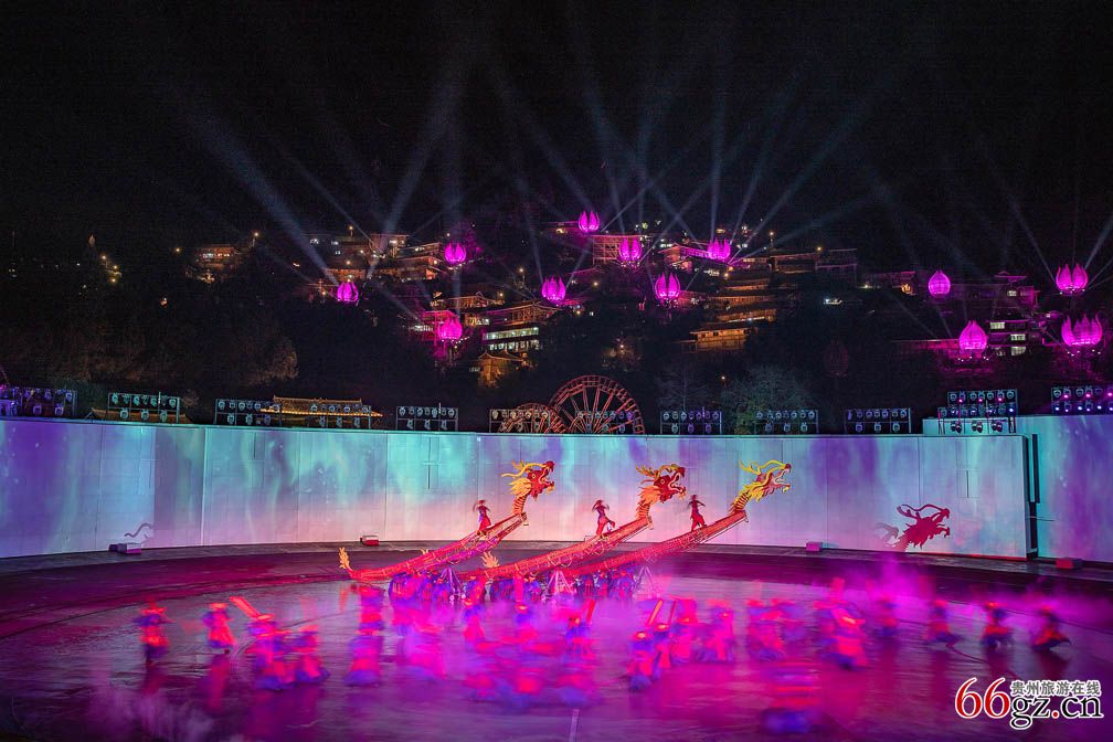 一部心史铸魂魄,一曲长歌颂家园。《西江盛典》剧目共分为《序幕·颂》、《祖·英雄》、《魂·跋涉》、《梦·家园》、《尾声·歌》5个篇章,依托大塘景区原始苗寨风貌和周边的自然景观,通过全息山体投影、灯光、舞美、造型、实景布景等与舞蹈的编创设计融合,配合可容纳2520名观众的360度可旋转风雨桥观众看台,全景再现了苗族儿女在祖先蚩尤带领下的迁徙史、发展史以及苗族人民智慧文明的伟大结晶,呈现出了一部气势磅礴的苗族文化盛宴,展现了苗族人民用智慧勇敢,守护家园的精神风貌。