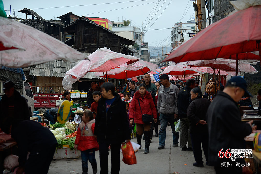 2015年1月24日,驱车来到距离贵阳市60多公里的贵定县城。穿过高耸的大楼,眼前低矮的那片平房就是老城了。跟随人潮,我们涌入了集市中。贵定老城集市,一个乡村大集市。这里有朴实无华的环境,有热烈喧哗的买卖,更有勾勒记忆的淳朴情怀。