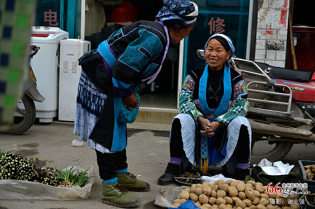 在贵定老城集市,无论是山珍野味,抑或是柴米油盐,无论是竹器木雕,还是碗筷针线,在这里都可以找到。这里的东西大多是农民从家带来的新鲜货,地上铺张塑料布或是麻袋,蔬菜瓜果堆放上面,人就坐在背篓上,守着。这样的巷子在我眼里永远色彩鲜艳,生机勃勃。鲜红的西红柿,橘红的柿子和胡萝卜,黄色的老南瓜,紫色的形状不太好看的茄子,暗红明黄的红薯,绿色的最多,堆成堆的大白菜小白菜,靠着白菜的生菜青菜瓢儿菜,洗净拣好捆成小撮码得整整齐齐的芫荽,还带着泥巴的小葱和蒜苗,老婆婆们特意用塑料袋装着摆在最前面的豌豆苗菠菜茼蒿鱼香菜..