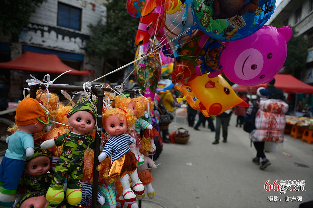 在贵定老城集市,附近的苗族把自己种的作物背到集市上卖,卖了的钱就换成自己需要的物品带回家中。虽然现代社会对传统文化有冲击的同化的趋势,但是在这样的集市上,苗族女人们依然穿着盛装。