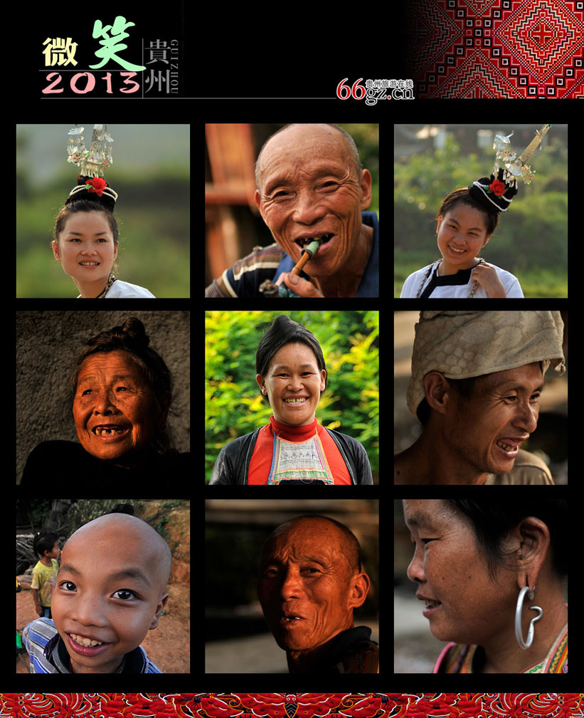 2012年年底,在辞旧迎新的时节,本网站举办了一场相当有意思的贵州笑脸作品征集活动,叫做“2013·微笑贵州”。活动规则很简单:请我们的网友在自己的相册里找到最具有代表性的贵州笑脸,不管他是你的家人、邻居、亲友或者仅仅是你在社区、在街头、在贵州旅途中遇到的路人向你展露的一张张笑脸都可以。我们的初衷是无论各位在过去的一年中遇到了怎样的不快或者悲伤,我们都希望你能用一张充满自信和温暖的笑脸迎接新一年的到来。