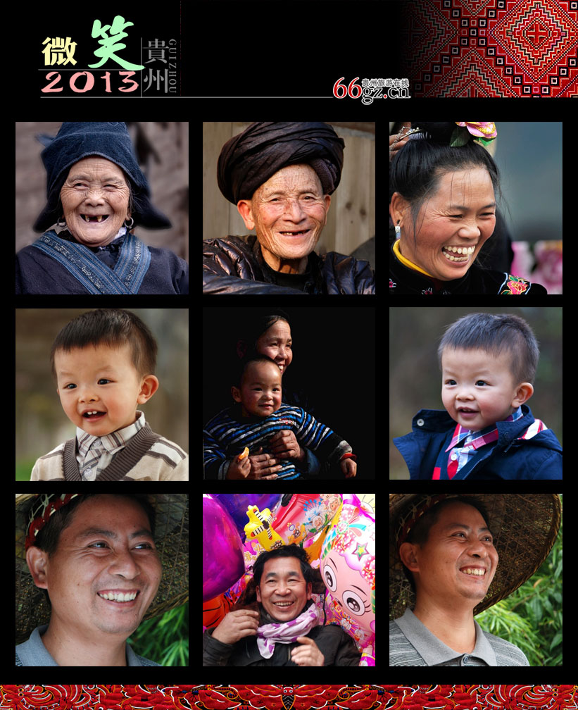 2012年年底,在辞旧迎新的时节,本网站举办了一场相当有意思的贵州笑脸作品征集活动,叫做“2013·微笑贵州”。活动规则很简单:请我们的网友在自己的相册里找到最具有代表性的贵州笑脸,不管他是你的家人、邻居、亲友或者仅仅是你在社区、在街头、在贵州旅途中遇到的路人向你展露的一张张笑脸都可以。我们的初衷是无论各位在过去的一年中遇到了怎样的不快或者悲伤,我们都希望你能用一张充满自信和温暖的笑脸迎接新一年的到来。