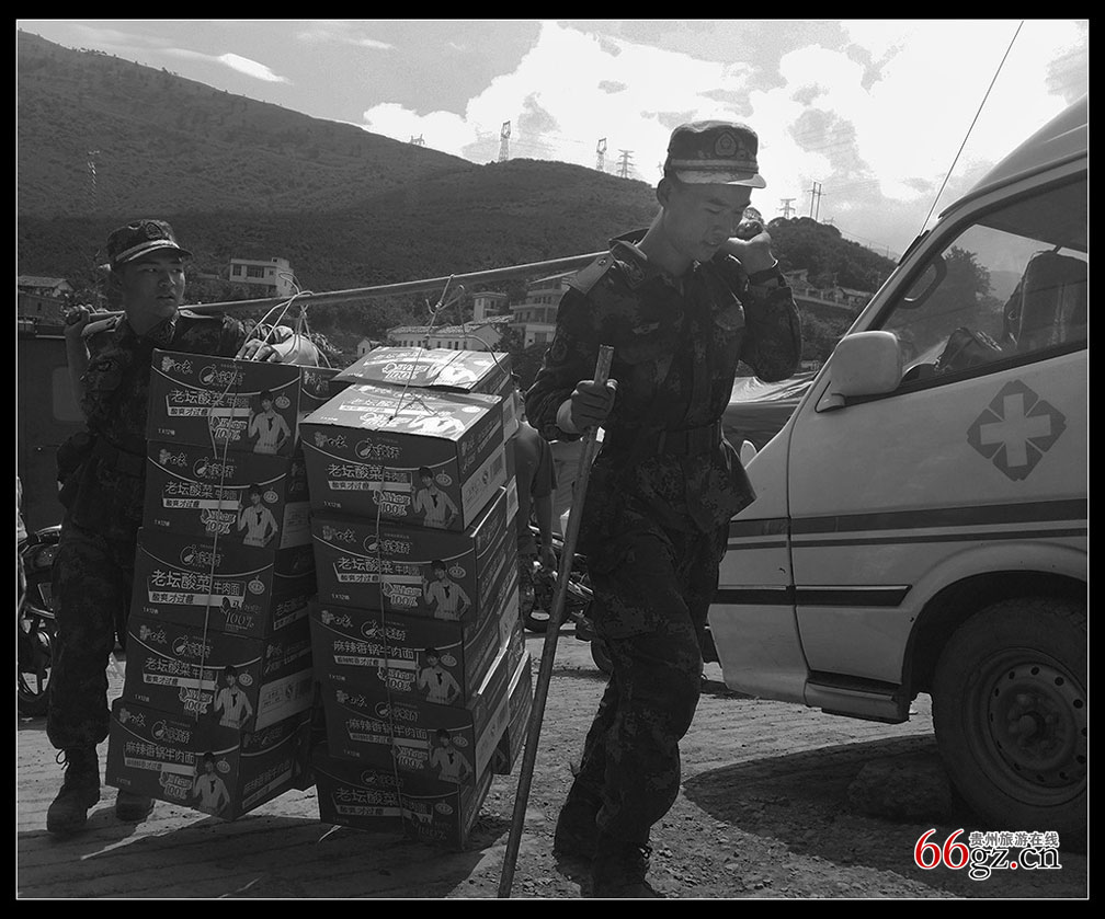 2014年8月3日16时30分在云南省昭通市鲁甸县发生6.5级地震,震源深度12千米。截至2014年8月6日10时30分初步统计,地震造成鲁甸县、巧家县、昭阳区、永善县和会泽县108.84万人受灾,589人死亡,9人失踪,2401人受伤。2014年8月4日,贵州纪实摄影家林坚从贵阳出发,次日凌晨2点到达鲁甸重灾区与解放军战士、外出打工返乡自救的农民工冒着生命危险徒步50余里山路进入龙头山重灾区,用手机记录了地震灾区军民抗震救灾的感人场面。
