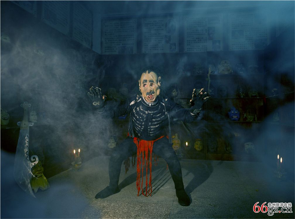 傩堂戏又称傩戏,是流传于梵净山区江口、印江、石阡等地的一种民间传统戏剧形式,具有明显的地域文化特征。其剧目的形式和内容作为我国古代戏剧发展的雏形,是研究我国古代戏剧的“活化石”。组图为江口县傩文化协会发起协会会长,著名的中国傩文化非物质文化遗产传承人,苗族傩文化第十六代传承人石东平大师表演傩戏《钟馗斩鬼》。