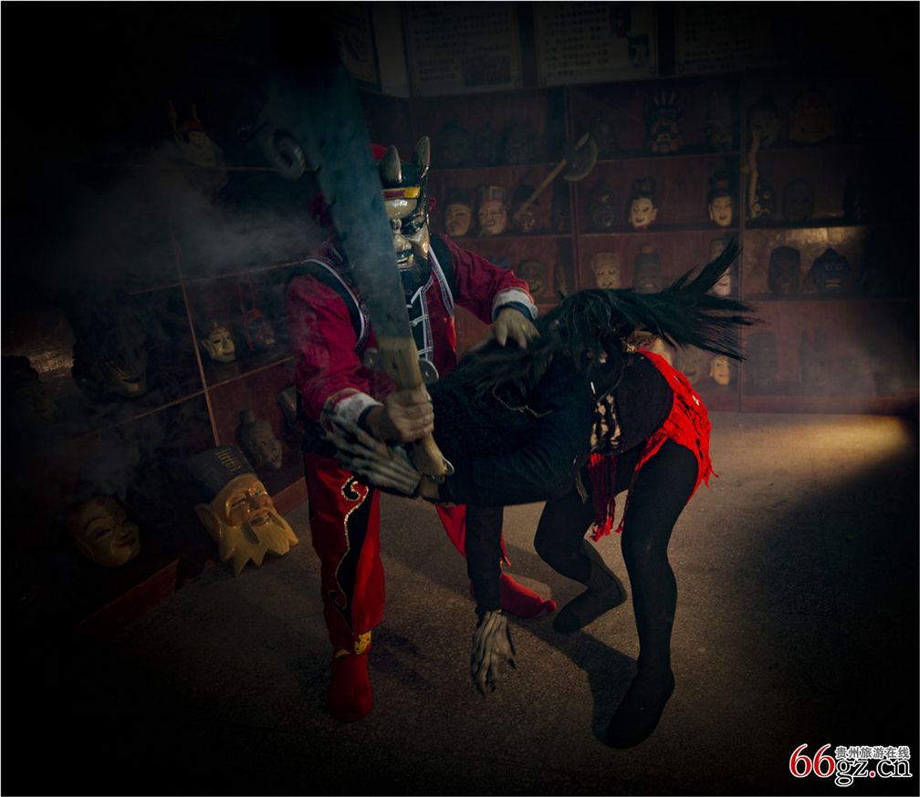 傩堂戏又称傩戏,是流传于梵净山区江口、印江、石阡等地的一种民间传统戏剧形式,具有明显的地域文化特征。其剧目的形式和内容作为我国古代戏剧发展的雏形,是研究我国古代戏剧的“活化石”。组图为江口县傩文化协会发起协会会长,著名的中国傩文化非物质文化遗产传承人,苗族傩文化第十六代传承人石东平大师表演傩戏《钟馗斩鬼》。