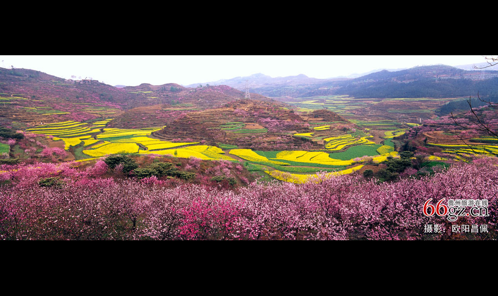 拍到自己满意的照片,有时还是要讲点运气的。2003年贵州第一届油菜花节在龙宫举行,那一年正好油菜花、桃花同时盛开,快到龙宫景区的路上,看到眼前是一片怒放的桃花,远处则是一片油菜花,再远处的山坡上又是星星点点的桃花,层层叠叠直到山边,一幅上好的田园美景展现在眼前,便顺手拍了下来。以后的几年,我都赶着季节再到这个拍摄点,看到的不是桃花谢了就是油菜花谢了,再也没有见到我那次拍到的照片上的美景。
