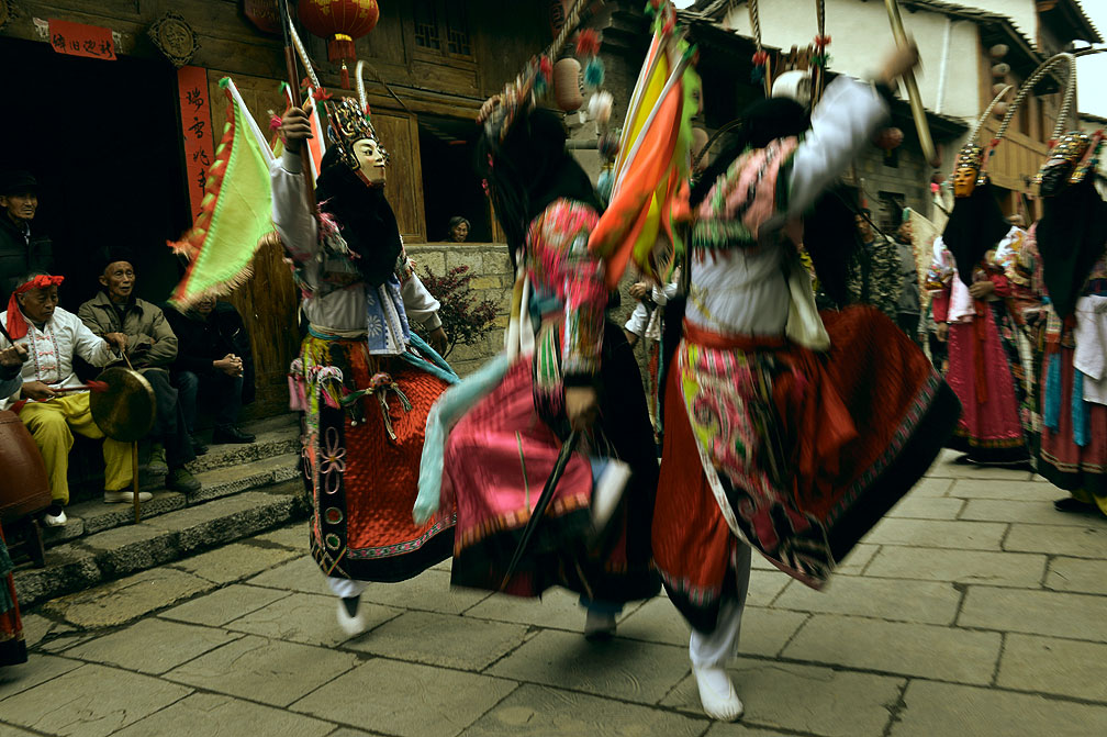 在安顺旧州古镇上演了一场精彩的地戏表演。地戏不仅有娱乐自己,教育旁人的作用,同时也为了祈祷丰收,祛灾逐难。屯堡人以这种古老的戏剧演出形式寄托着美好的心愿,一辈人又一辈人地传下来,从明朝初年,直至今天。