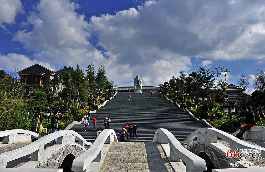 孔学堂背倚大将山,俯瞰花溪河,因袭宏伟、大气之汉唐风格,并融入贵州地域建筑元素。2012年9月28日即孔子诞辰2563周年纪念日落成揭幕。是贵阳市传承与弘扬儒学的圣殿。