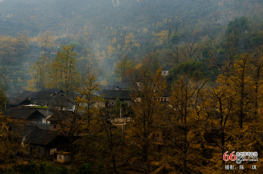 随着深秋的到来,妥乐古银杏景区进入银杏叶最佳观赏期。金秋的妥乐村被一棵接一棵的古树密实地掩盖着,山寨依山傍水,金色的秋叶给它镀上了一层梦幻的色彩。