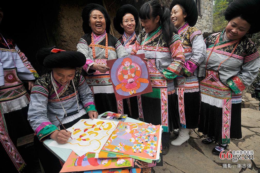 水城农民画是传统艺术中的一朵奇葩,拥有夸张、艳丽的艺术形式和古朴、幽香的民族气息。在这片最原生态的土地上,苗家人日出而作、日落而息,这一切苗家人的生活印记和民风民俗成了其农民画的创作来源。画里画外唱响苗家故事,尽显多彩贵州风。