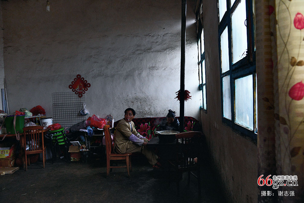 盘县是贵州的产煤大县,当地人至今还是习惯用煤取暖、做饭。我们在盘县大山镇的餐馆吃中餐,烧煤的铁炉子里还煮着猪食,餐馆的空间很高,约有5米。人们休息时就围着炉子取暖。