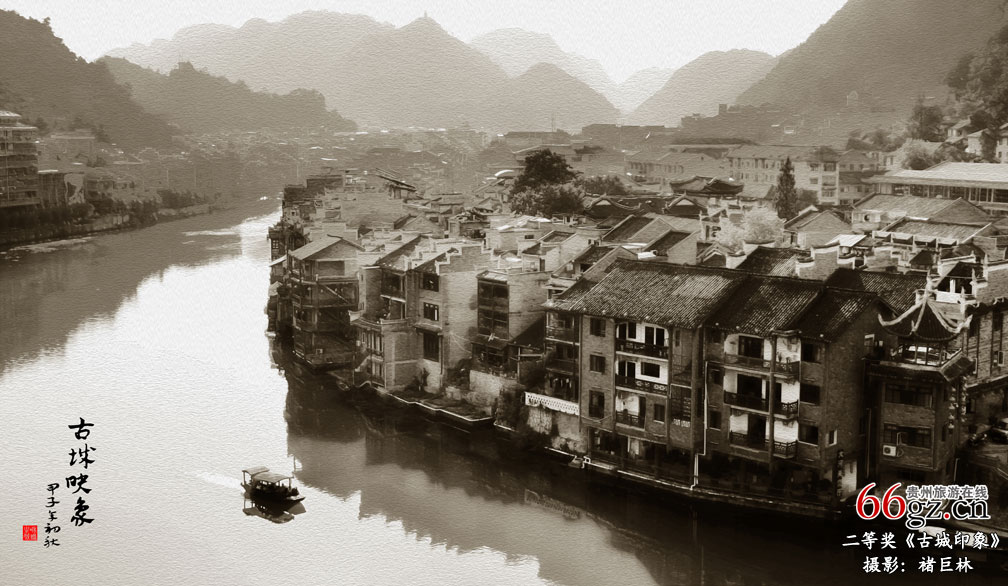 镇远古镇,位于贵州省东部舞阳河畔。这座拥有2000多年悠久历史的古城地处入黔要道,旅游资源丰富,人文古迹众多,自然风光旖旎。而最令人称奇者,城内舞阳河自西向东呈“s”型蜿蜒贯通全城,形成“九山抱一水,一水分两城”的太极图城市风水,被易学专家赞之为“中华太极古镇”。(图片源自/贵州省艺术摄影学会2014年09月月赛二等奖作品)