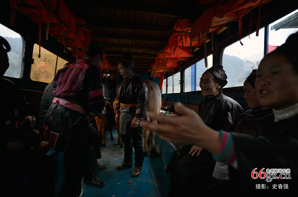 乘船前往贵州剑河县的巫沙苗寨,这是我第一次遇到这样的场景,与鸡鸭牛同船,还偶遇一群归途中的苗族人。打听得知他们是来县城吃亲戚的“新房酒”。在船上酒性真高,大家你来我往的聊天,还不忘记拉着我们这些异乡人参与其中。这样的经历想必这辈子也不会遇见几次。