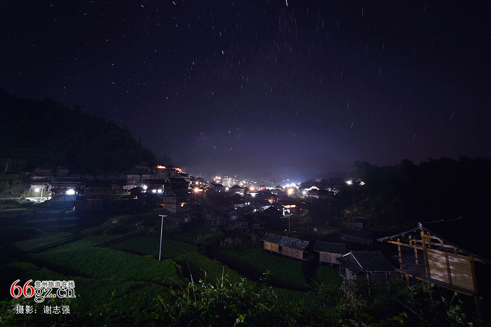 九点多的岜扒夜空,星轨与村庄组成的画面和谐安宁。留给我的,不仅有乡村宁静的一面,远望着,更给人带来无限的想象。
