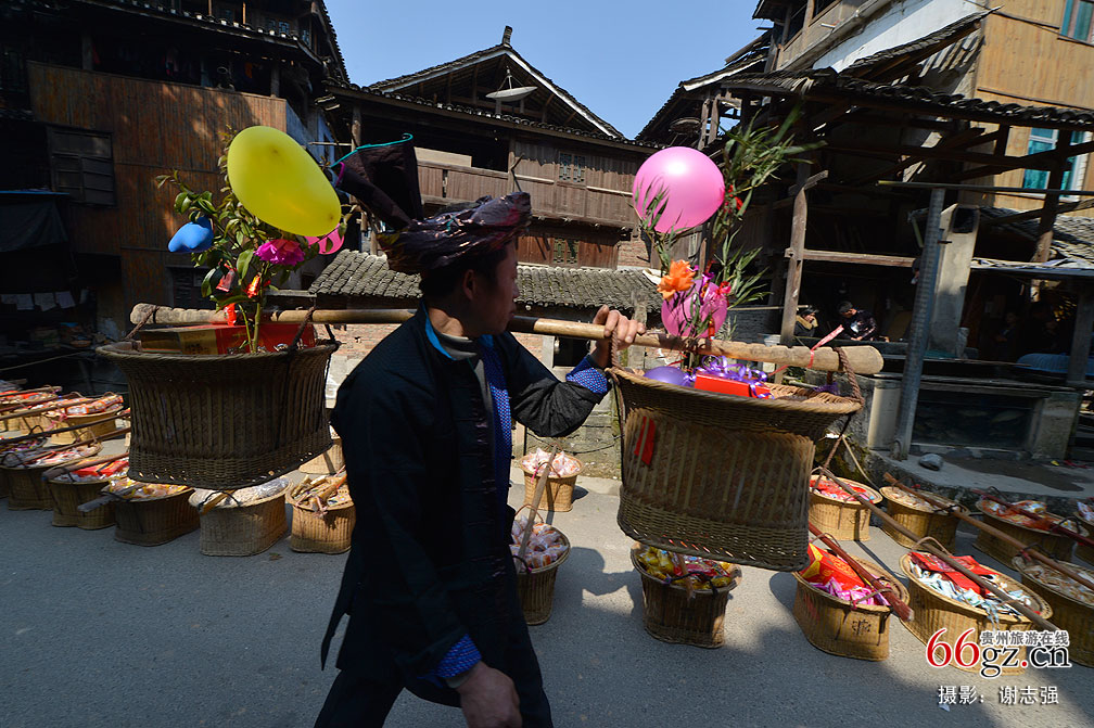 2016年正月初三,从江高增乡举办了一场隆重的侗族婚礼,亲朋好友按传统送来的礼品有200余担,几百人参加。迎亲队伍中,各种花枝招展的彩礼摆了一条街,非常吸引眼球。