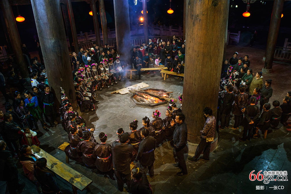 在从江北上鼓楼广场,看见一群侗族妇女在鼓楼下对歌欢唱。悠扬的歌声吸引了许多路人驻足聆听。侗歌清新纯朴的音色、优美和谐的旋律、巧妙自然的和声令来宾沉醉不已。(图片源自/“从江城运杯·神秘从江”国际摄影大赛参赛作品)