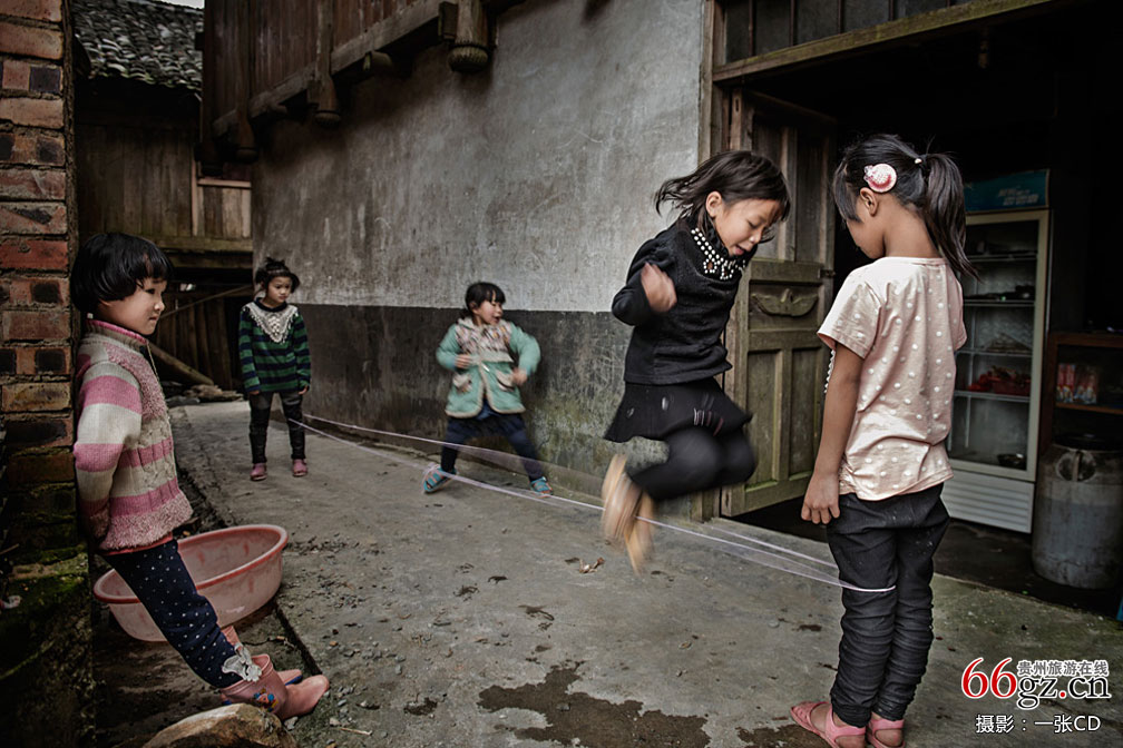 在从江加榜乡看见孩子们在家门口跳皮筋。女孩们嘴里念着自己编的歌谣,整个院子里洋溢着吵闹声,欢笑声。他们的童年里虽然没有五彩缤纷的玩具,但这样的童年一样充满童真,毫不逊色。(图片源自/“从江城运杯·神秘从江”国际摄影大赛参赛作品)