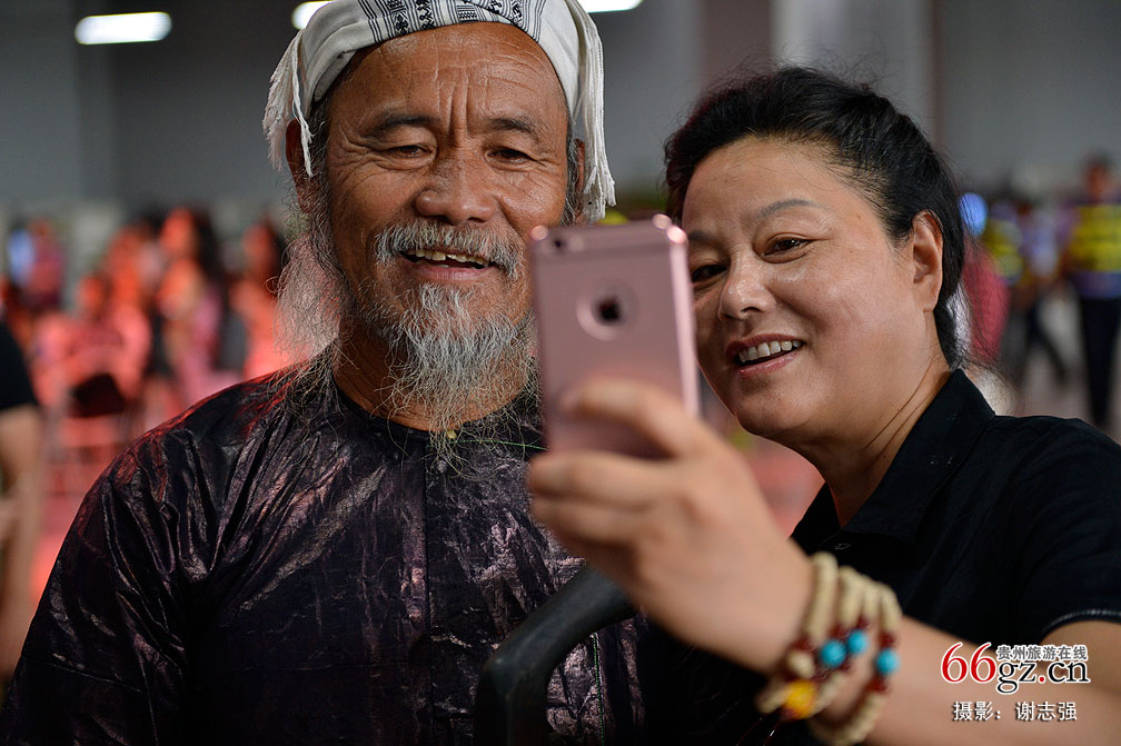 8月13日,2016多彩贵州文化艺术节,从江县专场活动亮相贵阳市多彩贵州文化创意园,从江古朴神秘的原生态民族文化遗产为来宾带来最炫民族风。贵阳市民纷纷和岜沙枪手合影,热情的画面被定格下来。