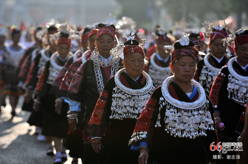 2013年中国·剑河仰阿莎文化节在黔东南州剑河县举行。少数民族同胞身着盛装参加节日民族风情巡游展演。苗族老人们虽然已到花甲之年,但个个精心打扮,精神抖擞,精气神完全不输年轻人。