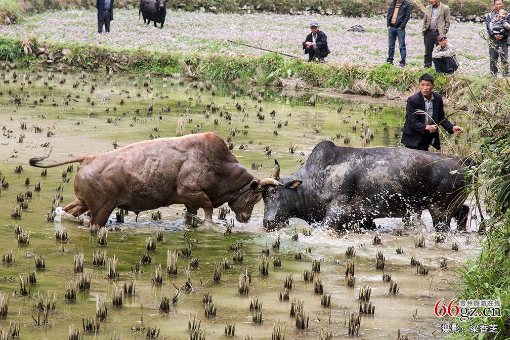 苗家人喜爱斗牛,是长久以来的文化传统,斗牛在以前都是在庄稼收获后,用以庆丰收,放松一下农民的心。如今,正在逐步演变成一种苗族重要的节日。该幅作品荣获2017年“苗侗祖源 绿色榕江”影像征集活动收藏奖。
