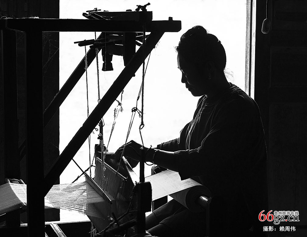 一位侗族妇女正在自家的织布机上认真的纺织着,或许她织出来的布匹是要给儿孙做新衣,或许是留着日后使用有备无患。其专注的神情让我对她刮目相看。