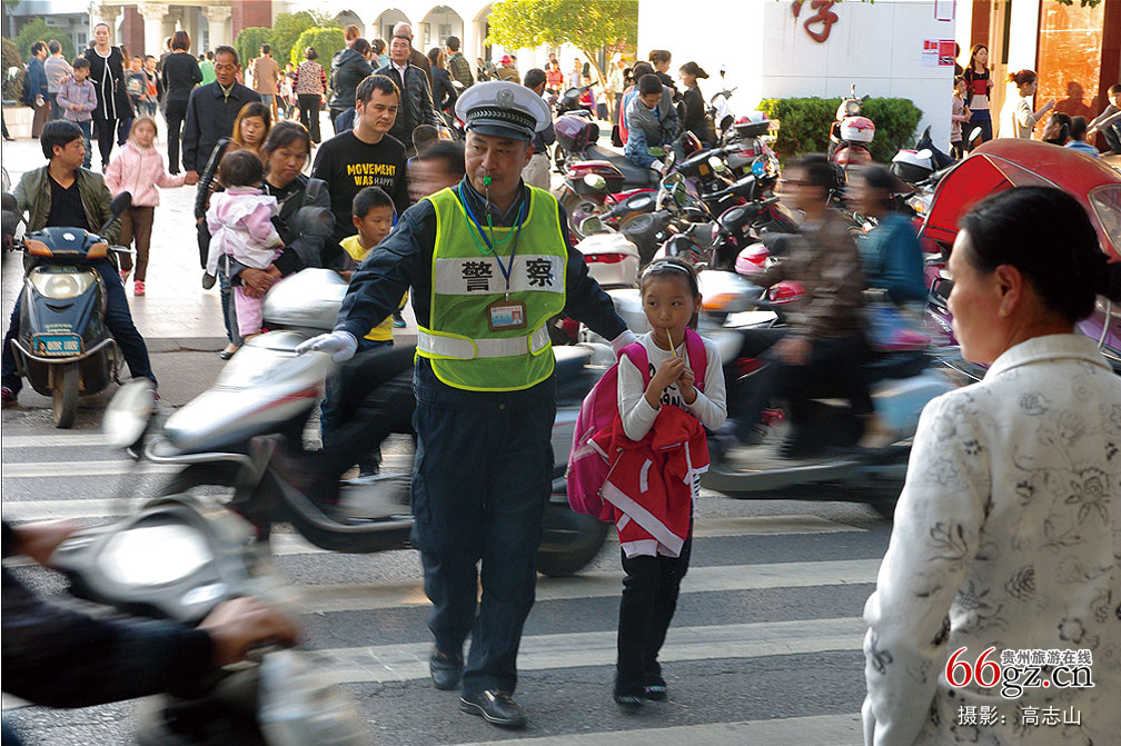 此类照片出现过很多,但这一幅作品却让人为之动容。作者没有刻意地等待,而是信手拈来,定格了感人的一瞬。警察的一伸手、一声哨响,保护小学生过马路的专注,真实自然,主体人物十分突出,是一幅难得的佳作。(图片源自/“贵在责任 贵在关爱”第二届全国网络摄影大赛相机类三等奖作品,赛事由贵州福贵文化传媒主办、贵州旅游在线网站承办、贵州中烟工业有限责任公司独家支持。)