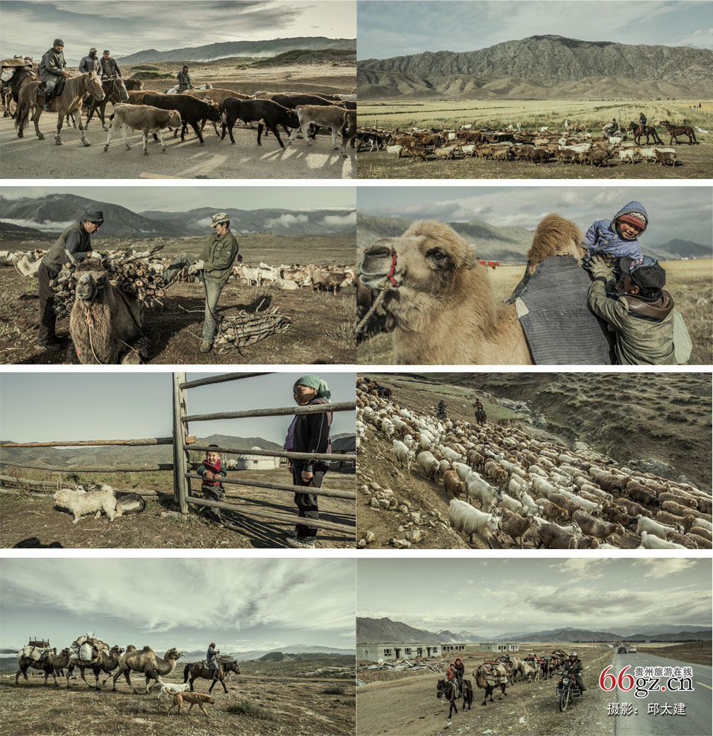 游牧是哈萨克族传统畜牧业的主要生产方式,金秋时节,除了正常的放牧之外,最激动人心的要算是哈萨克牧民的转场了。拖儿带女的驼队,多了家的温馨,多了几许亲情的感动。从夏季牧场离开等到来年再回到这熟悉的地方。流动的家园永恒的游牧情结。(图片源自/“贵在责任 贵在关爱”第二届全国网络摄影大赛照片故事类优秀奖作品,赛事由贵州福贵文化传媒主办、贵州旅游在线网站承办、贵州中烟工业有限责任公司独家支持。)