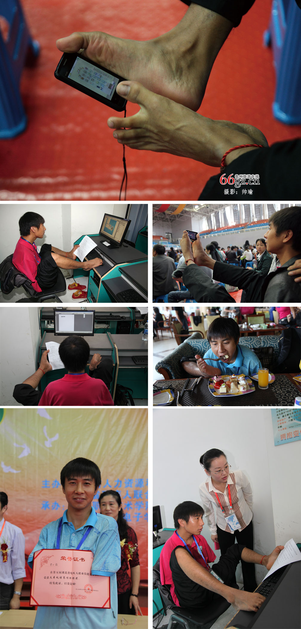 这是省残联给残疾人做职业技能培训的专业基地。失去双臂的青年,用脚学习着电脑和打字,不少人夸这小伙子。他说:真的没啥,你们用手做的事,我换了个办法,用脚而已。脚成了他生活的“支撑”,衣食住行全都靠脚解决,他用双脚书写着自己的青春。(图片源自2014“中国梦 我的梦”全国残疾人网络摄影大赛三等奖作品,赛事由中国残联宣文部、贵州省残联主办,多彩贵州城协办,贵州旅游在线承办。)