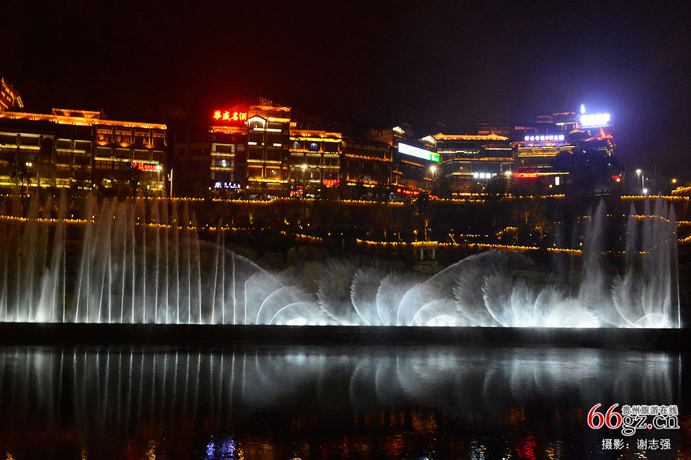 赤水河全长523公里,不出百里必有好酒,流经地域出产了以茅台为首的大小数十种名酒,占中国名酒的60%,故称美酒河。与此同时,在茅台镇,美酒河上还设置了水幕电影音乐喷泉,会在重要节日和活动上绽放,带给市民视觉与听觉的双重享受。