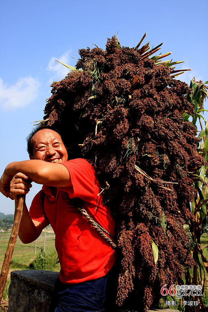 茅台镇上风调雨顺时节,高粱一个个长得身强力壮,膀大腰圆,于是秋后便收获了农家那一背篼一背篼的很有分量的欢乐。此幅作品荣获2017年“秘境茅台 酒旅仁怀”全国美术暨摄影大赛“收藏奖”殊荣。