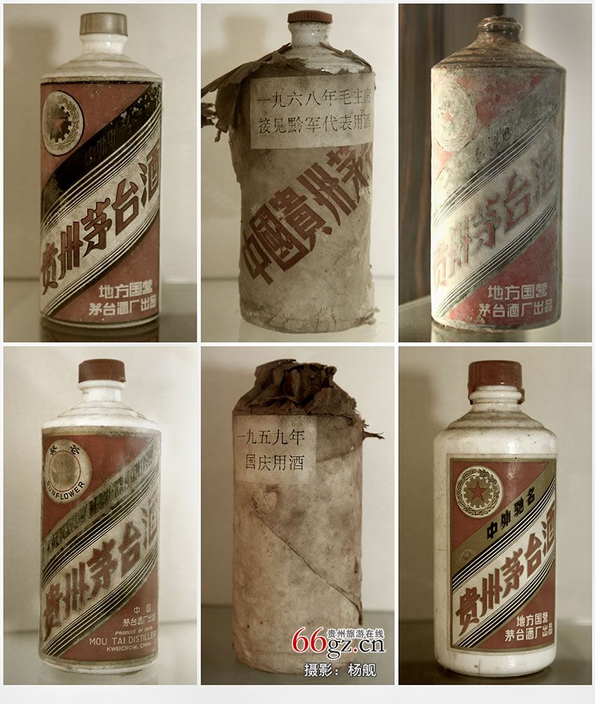 在仁怀市国酒文化城内,收藏了匾、书画、文物作品5000多件,系统介绍了中国历代酒业的发展过程及中国历史上与酒有关的各方面的典故。图为馆内展示的不同年代的茅台酒。