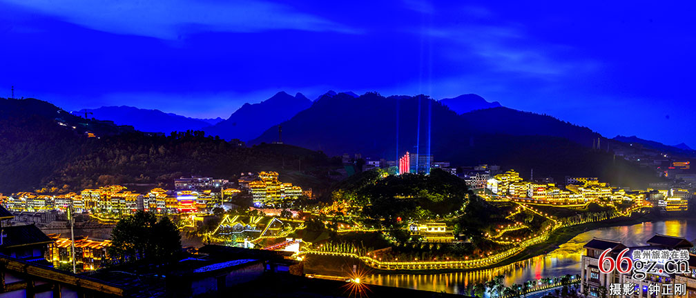 夜幕降临,贵州省仁怀市茅台镇赤水河沿岸灯火璀璨、霓虹闪烁,小镇夜景分外美丽。茅台镇于2016年被评为第一批中国特色小镇。