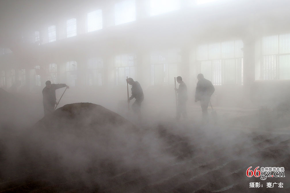 中国酒都茅台,有上万名酿酒工人。酿造车间里热气腾腾,酒香四溢,起糟、拌料、上甄、蒸酒,工人们正忙得不亦乐乎。
