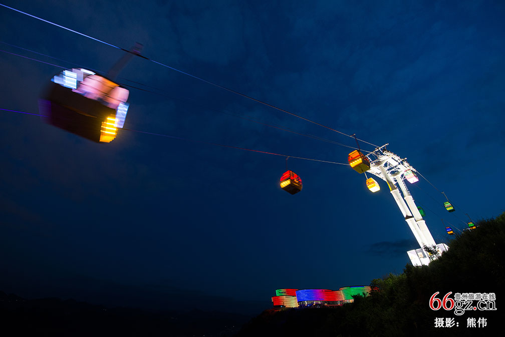 放眼全国都少见的灯光索道,在夜晚乘坐感受更佳。索道除了美妙的灯光,还有音乐相伴,然而最让人期待的,自然是窗外茅台镇的景色。
