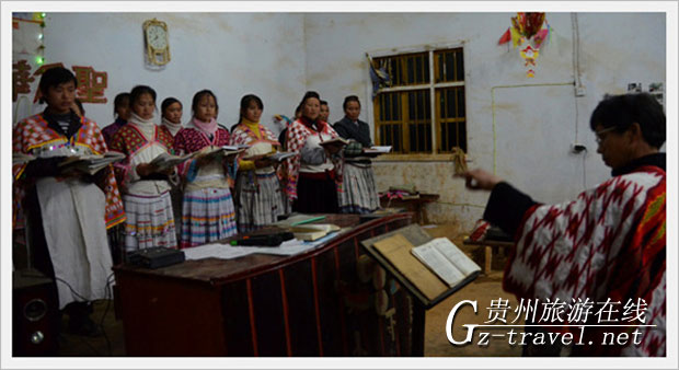 要启程的时候,路边站着一群身着盛装的苗家妇女,她们人手抱着一本《赞美诗》,走过去与她们交流得知她们即将出发去做礼拜,她们挎着由精美的绣片缝制成的包里装着汉语和苗语两种版本的《圣经》。我用英文唱了几句silent night,holy night她们用四个声部和了上来,有的用苗文唱,有的用汉语唱。我被迷住了,久久地忘情于她们之中。