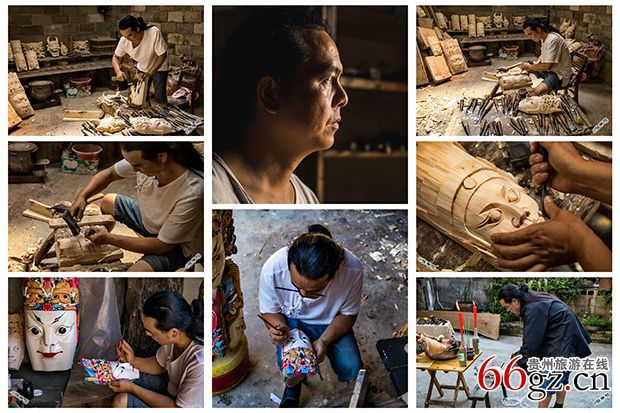 我们探访的傩雕艺人周明在当地可是响当当的人物,在2016年屯堡傩雕技艺比赛中夺得“安顺十大工匠”民间艺人排名第二。