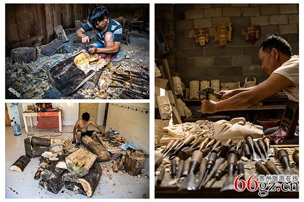 走进周官村不难发现,除了凤阳汉装大袖子、尖尖鞋,许多人家的私宅大院里到处堆放着傩雕和木雕类作品,一锤一凿的铛铛声里,不仅是屯堡人文化血脉的传承,也是一代又一代匠人赖以生存的根基。整个村几乎每家每户都会雕刻面具,都做面具雕刻,这在中国大地上是极其罕见的。