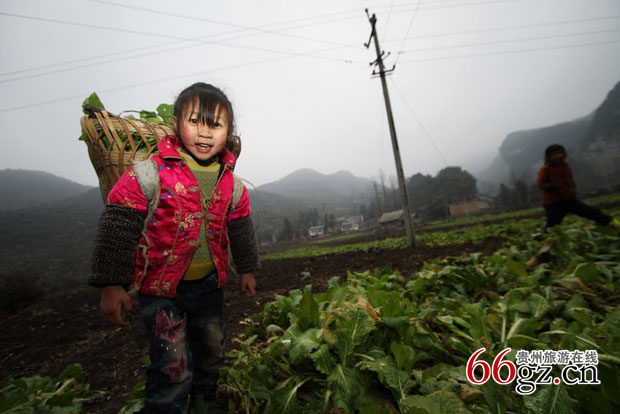 黄建华的小女儿黄小彤背着刚刚又地里割回来的猪草回家