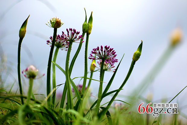 也真是巧了,在赫章老百姓的心中还真是把大小韭菜坪当成恋爱男女来看待的。当地民间传说,大韭菜坪和与之遥遥相望、位于珠市乡境内的小韭菜坪本是一对恋人,小韭菜坪属男性,而大韭菜坪则是女性。小韭菜坪阳刚而苍劲,而大韭菜坪则阴柔而温顺,具有母性的博大胸怀。他们之间相隔几十公里,大山的阻隔隔不断这对恋人的思恋之情,每年,通过风的传递,小伙子把生命的种子播撒在大韭菜坪上,到八九月份,大韭菜坪便开出浸人心脾的韭菜花,向小韭菜坪这位英俊的小伙子敞开温馨的胸怀,年年如是,岁岁如是。啊!多么美妙动人的爱情传说,多么忠贞的爱情宣言!站在几十万亩紫色的韭菜花海之中,聆听着这美妙的爱情传说,我,陶醉了。我闭上眼睛,我的眼前全是那紫浪翻滚的韭菜花,我的脑海里全是那讲述了千百万年却总也讲不完的爱情传说……
