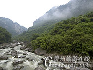 气候宜人。南江峡谷气候属北亚热带季风湿润气候,由于处于河谷低洼地带,兼具亚热带气候特点,全年平均气温15.7度。由于河谷切割较深,气候垂直差异明显,谷顶和谷底日平均气温相差2-3度,很容易形成云雾景——早上起来,常见雾气从谷底升起,在山半腰往来徘徊;夕阳景——夕阳西下,把山尖染成橙红色,谷底则呈深蓝色;明月景等气象景观。 天 然 植 物 园 南江峡谷全长18.4公里,两岸重峦叠嶂,奇峰入云;古木参天,野花罩地;清流激湍,飞瀑悬泉,有如清人余樾诗“重重叠叠山,曲曲弯弯路。丁丁咚咚泉,高高下下树”之意境。峡谷内植物种类繁多。已记述的维管束植物计118科、277属、414种,占贵州同类植物总数的7.6%,其中被子植物95科、236属、352种,蕨类植物17科、32属、51种,裸子植物6科、9属、11种,其中不少种类具有很高的观赏价值和经济价值。 观赏植物:景区内有70种观花、观叶和观果植物。观赏花卉植物有杜鹃花科的4种杜鹃、腊梅科的腊梅、百合科的百合、石蒜科的石蒜、忽地笑、千屈菜科的紫薇、鸢尾科的鸢尾、木犀科的桂花等,这些花卉或紫或蓝,或红或白,一年四季、花开花落,清风徐来,花香扑鼻;观叶植物有骨碎补科的肾蕨、百合科的沿阶草、天南星科的海芋,棕榈科的棕榈、棕竹、小檗科的南天竹、十大功劳、金缕梅科的枫香等,这些植物四季 | |