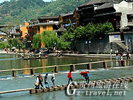 三、说有36只缸,9条船来装,每船要装缸,装单不装双。问:该怎么装?这是“吉斗”寨的龙叔出的迷题,难得我和同床的朋友一宿没睡安稳。朋友认为这绝对是个智力陷阱。 走玩,前提是走,重点在玩。苗语“德夯”,意为“美丽的大峡谷”。德夯苗族民俗风情园的东南向,有两条溪流,一条源自“流沙瀑布”,一条直溯“玉带瀑布”。 年初四上午,我们先走“流沙瀑布”线路,单程约一个小时。溪水不远不近地一路身边伴随,奇峰分列,冷冷的空气沁人心脾,行人廖廖,十里山水像是我们自家的后花园。 | |