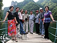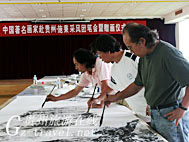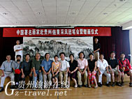 驻足,他们被施秉的原生态自然风光吸引,不停的问这问那,前来陪同的黔东南州文联主席杨正豪和州书法协会主席杨光融也当起了“导游”,让画家们跟着图片先在施秉旅行……三角洲的“水龙”表演无疑也吸引了这些来自京城和西北的艺术家们。望着那“水龙”在人们盆泼的水中盘、舒、卧、腾,画家们惊叹于这独特的民间文化,看着人们那兴高采烈的融合在水帘、水幕、水柱、水花中,画家们笑着摇了摇头,我问他们是不是不喜欢,刘永茂老师说年龄大了,赵刚老师说身体不适,而年龄真的最大的师恩钊老师,已经不知道钻到哪拍照片去了。 今天恰逢传统的端午节,施秉县城的舞阳河畔彩旗招展。龙舟赛裁判台的红地毯上,一位苗家姑娘摆弄着彩群,在场的十多个照相机、手机的镜头对准了她。师老师眼尖,从河岸上大步流星的赶过来,也抓到了好景。 接待车在杉木河景区的停车场停稳后,我就带老师们去乘观光车准备到河边的漂流节开幕式现场,却老等不来于永茂老师和郑山麓老师。赵刚老师说,他们一下车就在那画上了,舍不得走啦。我听罢觉得好感动,感动我们的山水有如此的魅力,感动他们如此的敬业。为了按照组委会的安排上车,委托景区管理员请于老师和郑老师先去河边看看沿途景观再选择对