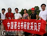 车行不到二十分钟来到云台山门前,画家们下来投身大自然。 樱桃湾的幽静使他们醉得大气都不敢出,说是生怕把这里的负氧离子吸完了,他们一口一口的深呼、深吸。他们说这里真可以把沉淀在肺部的城市闷气和汽车尾气吸出来,更可以洗去钢筋的穿刺和混凝土的压抑,我想是的。 漫步在樱桃湾的林间小道上,画家们气刚平息、心渐平静,翻过梁子却又心跳加速:排云关内,那山的气势把他们镇住了,那路的陡峭令他们惊叹了,那树的绿荫着实让老师们又喝了一杯。 到了映斗阁下面的观景台,于老师不声不响的打开速写本在烈日下画起来,不一会,他的面颊上流下串串汗水,宾角的发梢上还挂着一滴变大的汗珠,直到那根头发承受不住掉下,另一滴又开始形成。 郑老师、刘老师、谭老师相继摆开家什,赵老师在一壁岩下观景识物,老当益壮的师老师拿着他的宝贝相机“各自为阵”去了,他说,只能先用相机拍下来,要写生和画是写不完、画不完了。”