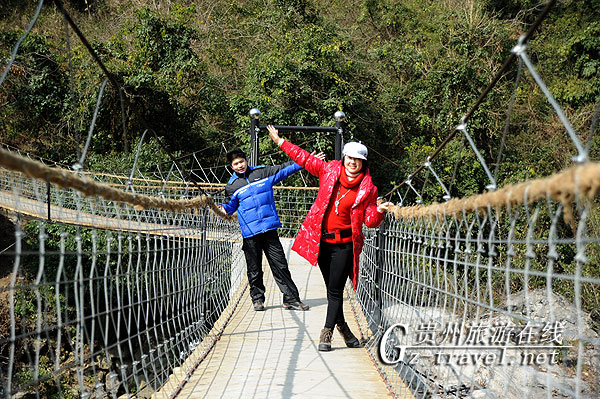 印象最深的便是那“金钟瀑布”了。过了几座吊索桥,走了一段栈道,来到了一处瀑布前,举目看去,这瀑布真是奇特,像一口金钟,表面呈黄土色,上小下大,中部有一小孔,人可从钟口入,并在内里行走,还可从小孔探出头来。几绺瀑布下挂,如少女秀发,俊美飘逸。一年四季,这里花开花落,阵阵清风徐来,花香扑鼻,让人流连忘返。