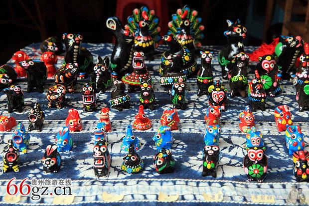 手工烧制的黄平泥哨。上面睡觉的那位,再不醒来哨子可要被拿走了哦。