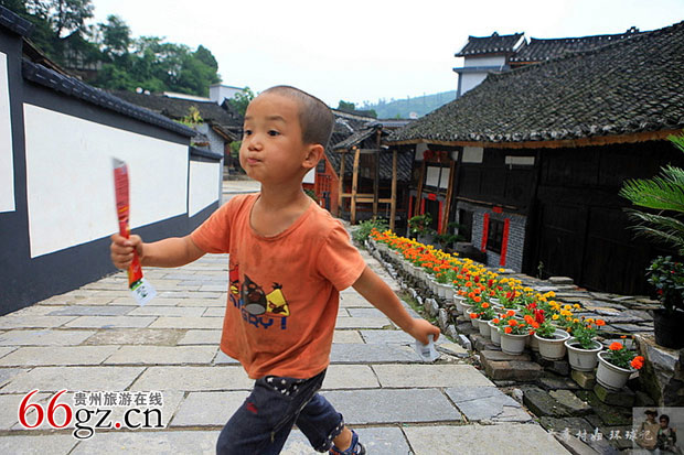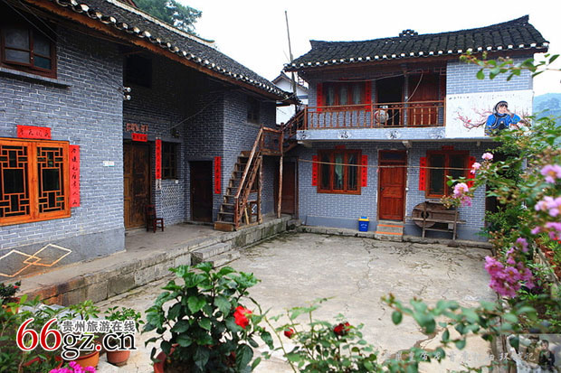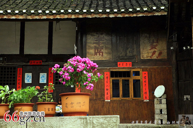青色墙壁黛色瓦,紫色三角梅开,红对联贴起,水头寨处处可见人们对生活的热爱